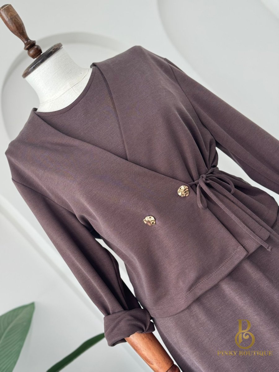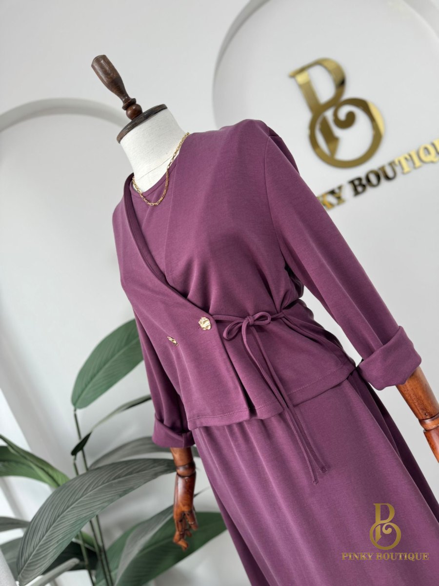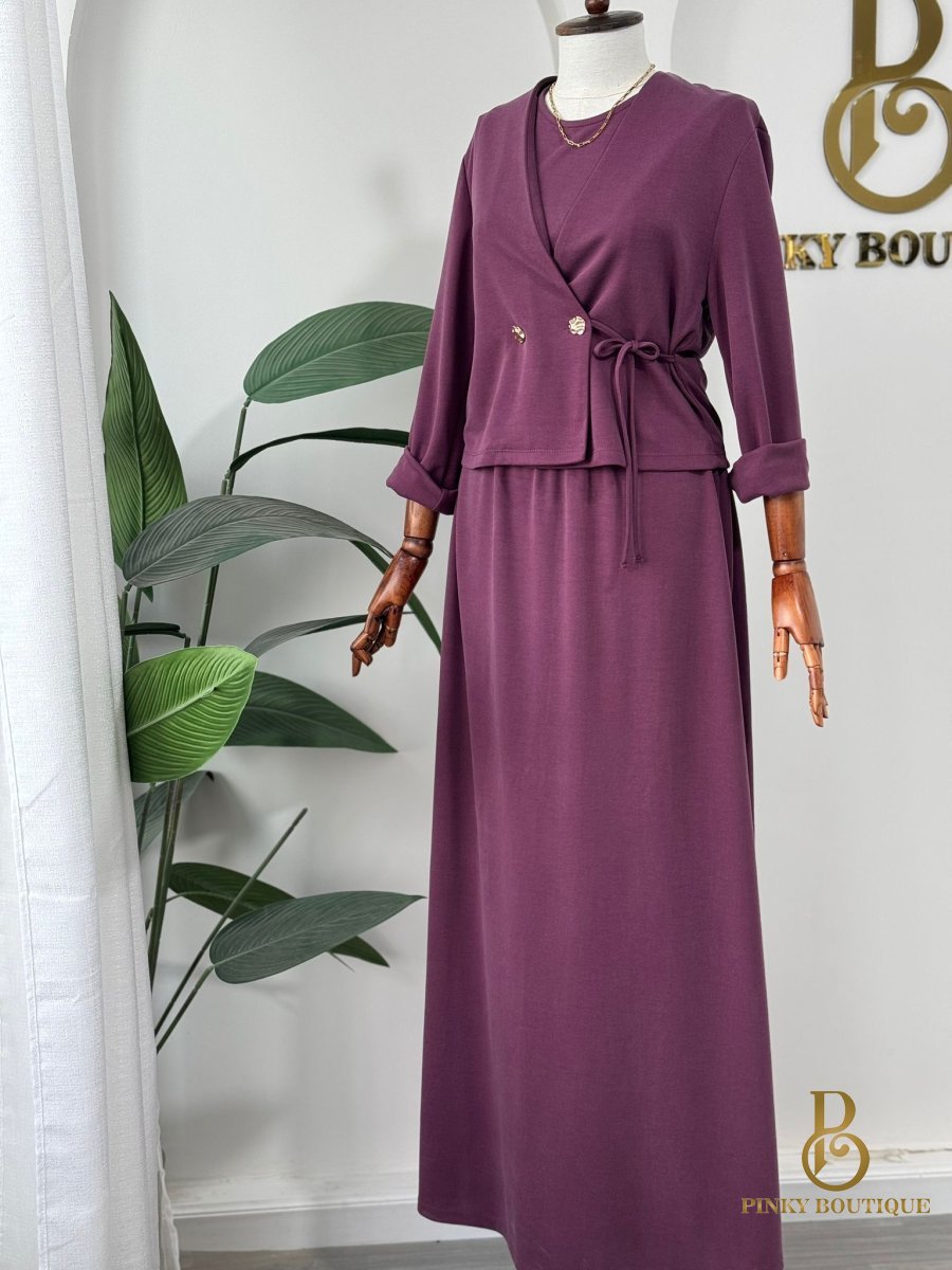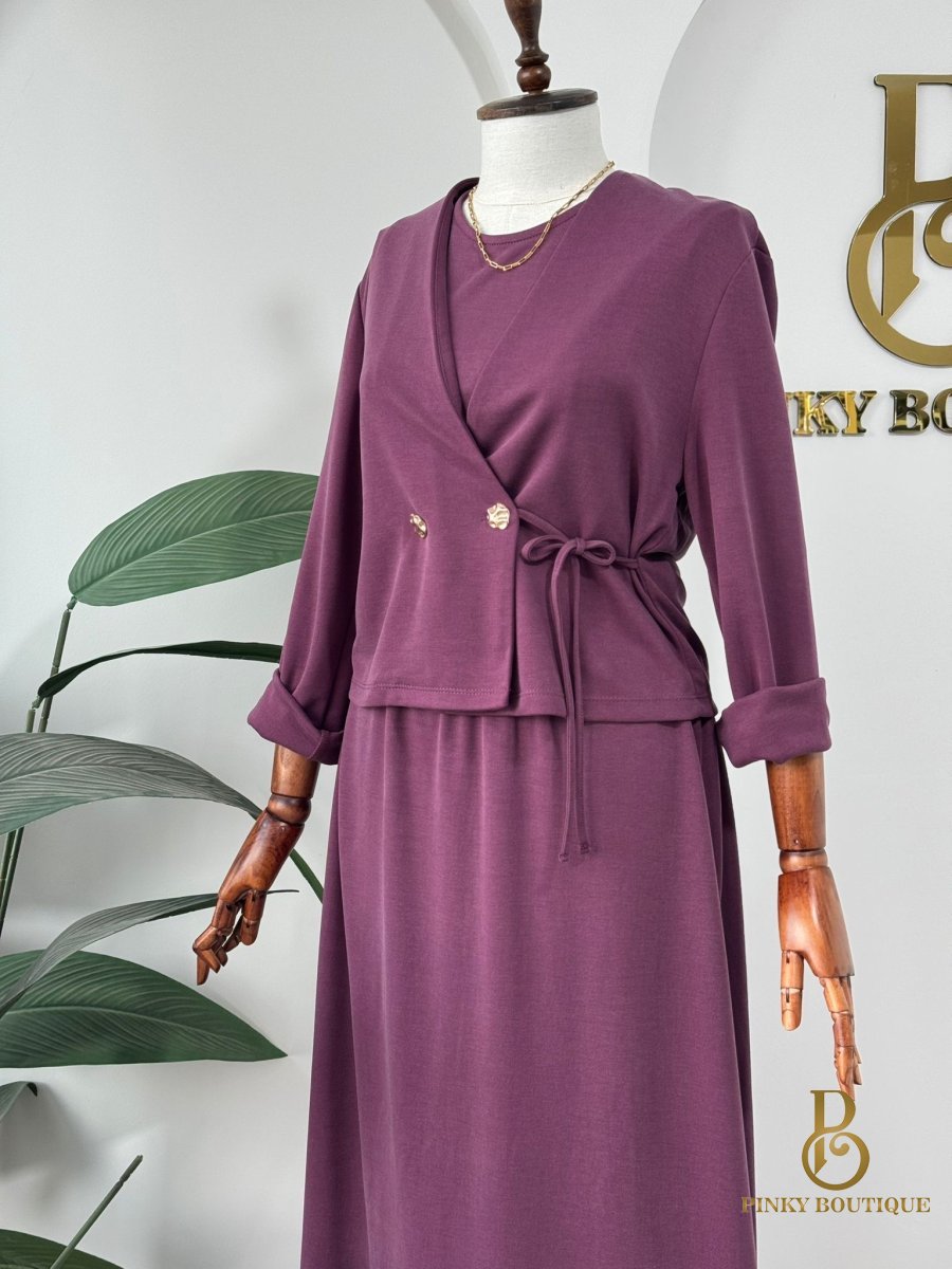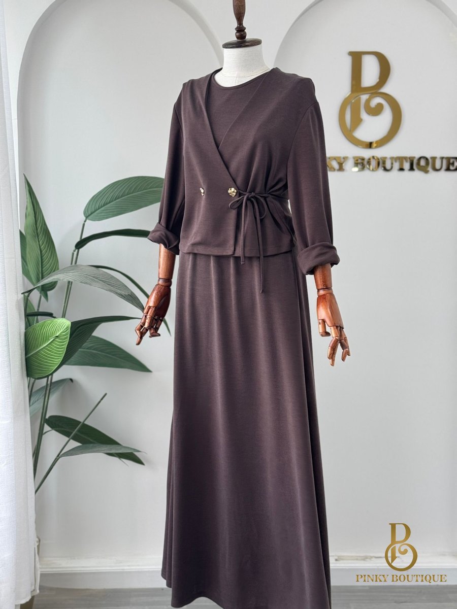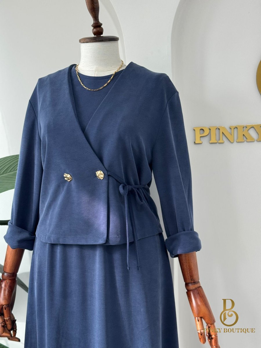 فستان كت وفوقه جاكيت بتسكر بزرين وربطه