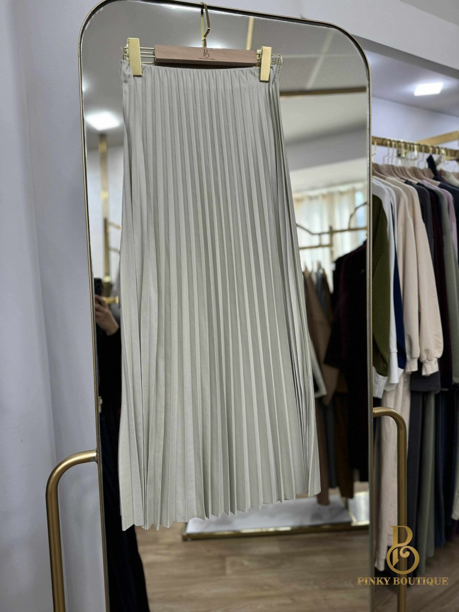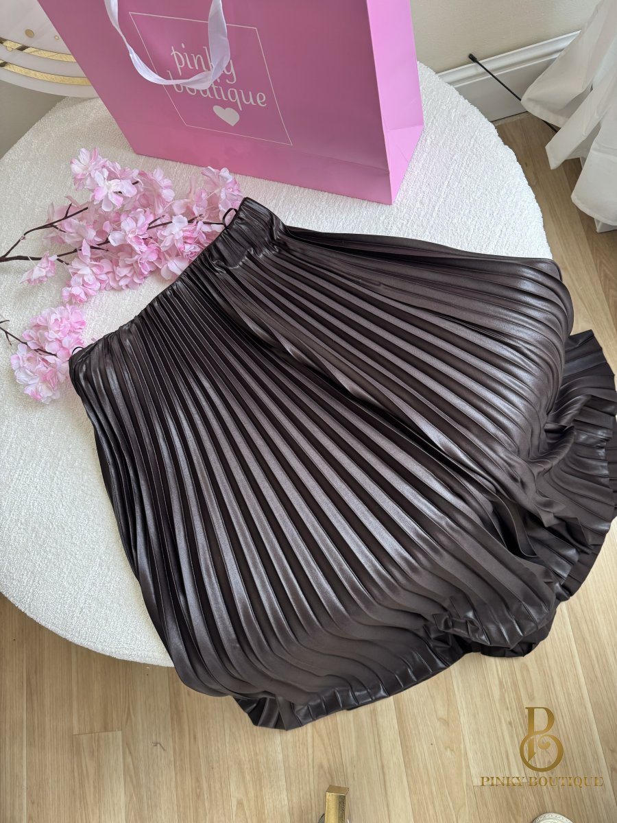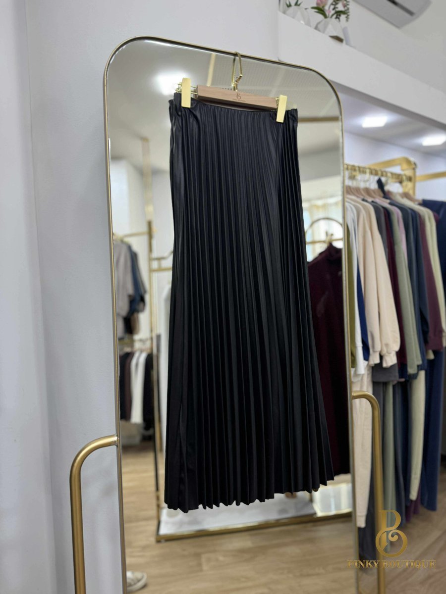 تنورة كسرات قماش بلمعه جلد