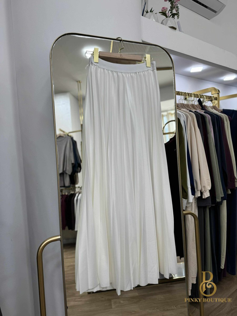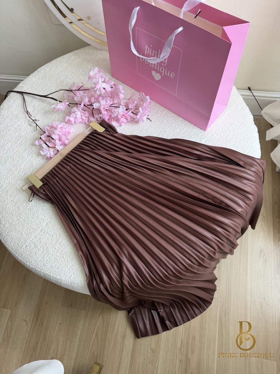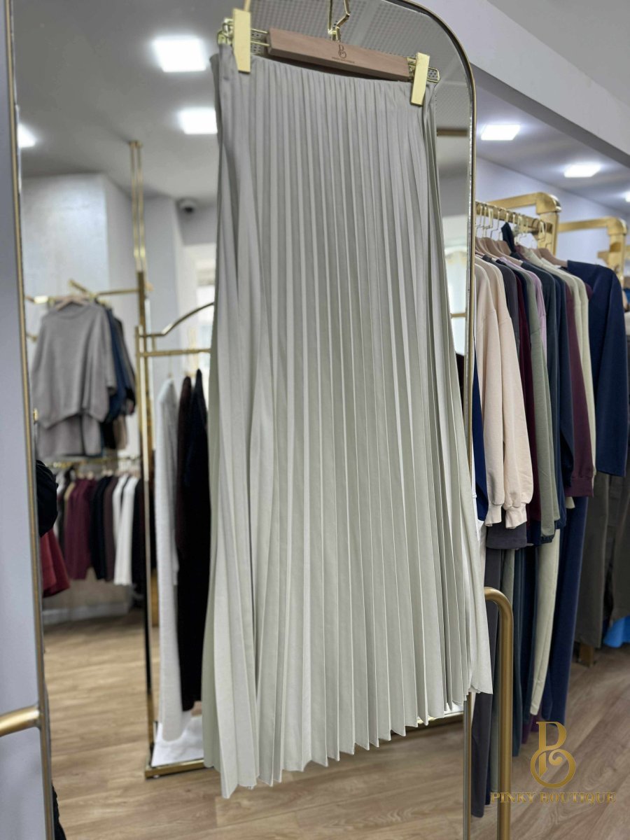 تنورة كسرات قماش بلمعه جلد